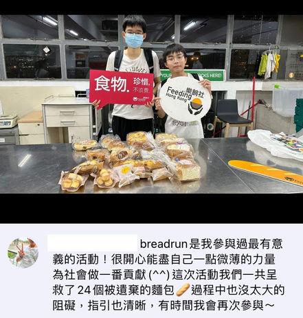 於麵包店拯救賣剩的麵包,然後送到收集點,食物銀行樂餉社會於翌日轉贈麵包予慈善機構。